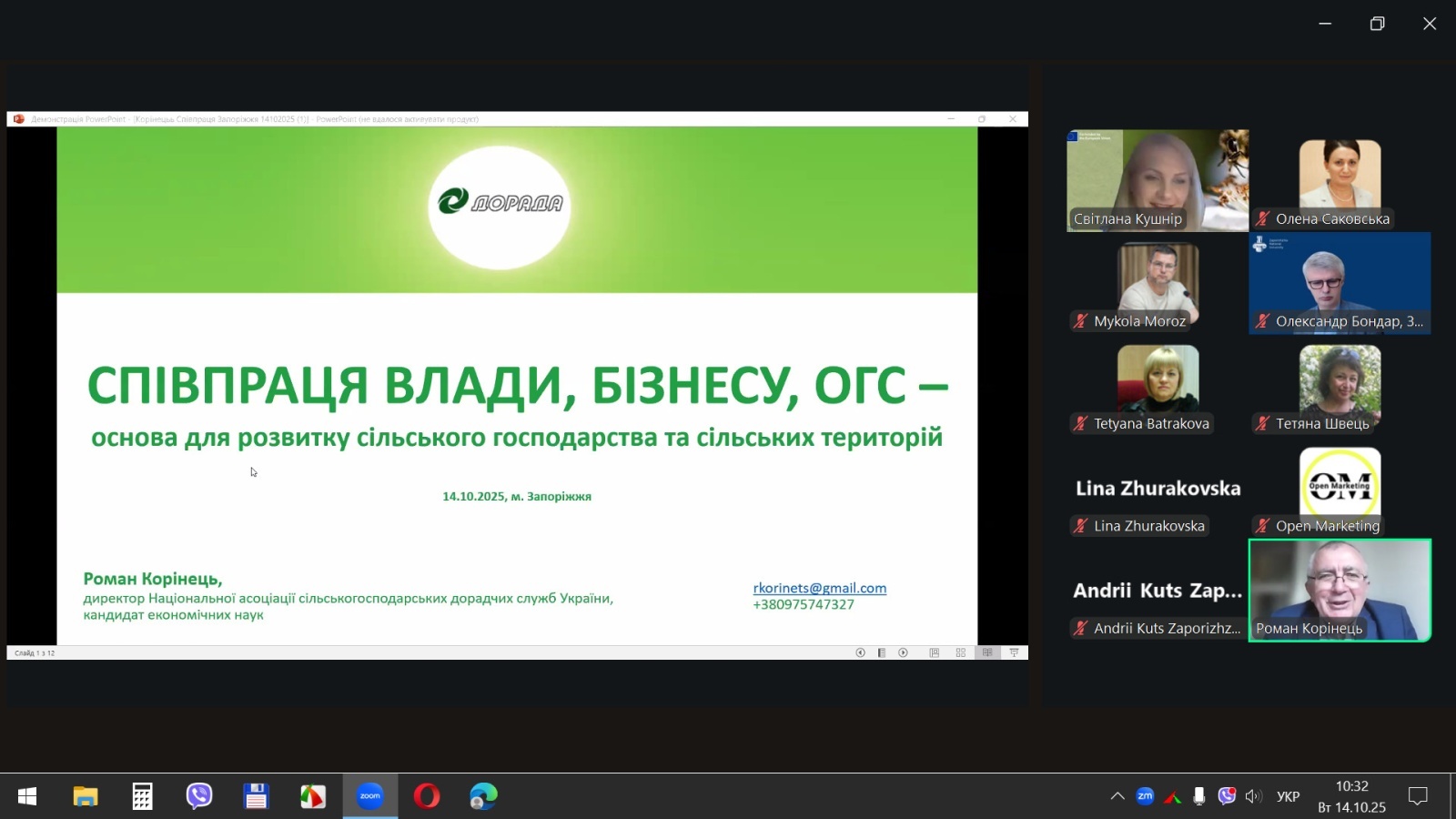 - обговорення та визначення перспективних напрямків розвитку регіонального та національного агробізнесу, приведення системи продовольчої безпеки України до європейських стандартів шляхом сприяння, підтримки та пріоритетності відновлення та сталого розвитку сільських територій;