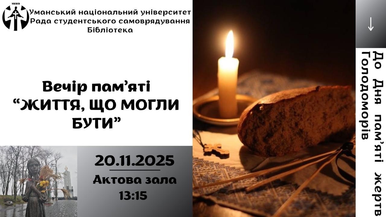 20 листопада 2025 року Рада студентського самоврядування УНУ провела вечір пам’яті «Життя, що могли бути». Захід було присвячено Дню пам’яті жертв Голодоморів.