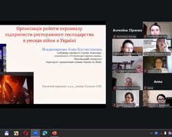 Анна ВЛАДИМИРЕНКО, здобувачка НУБіП України, розкрила дуже важливу тему «Робота персоналу підприємств ресторанного господарства в умовах війни». Родзинка доповіді – HR-аспект функціонування галузі в надзвичайних умовах: управління стресом, мотивація команди, збереження кадрового потенціалу. Результати дослідження можуть стати основою для розробки галузевих стандартів роботи з персоналом у кризових ситуаціях.