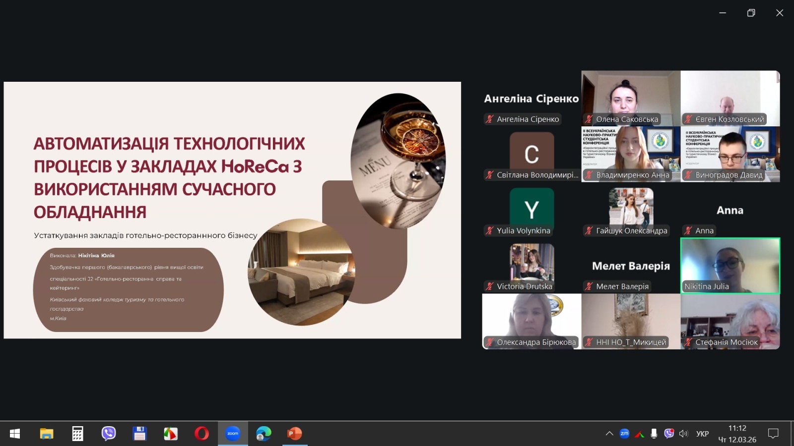 «Автоматизація технологічних процесів у закладах HORECA з використанням сучасного обладнання» не менш цікава доповідь Юлії НІКІТІНОЇ, здобувачки вищої освіти цього ж коледжу. Практично орієнтоване дослідження про впровадження сучасних технологій, що дозволяють підвищити ефективність та знизити операційні витрати. Безумовно тема вкрай актуальна для всього HORECA-сектору в умовах кадрового дефіциту та необхідності оптимізації.