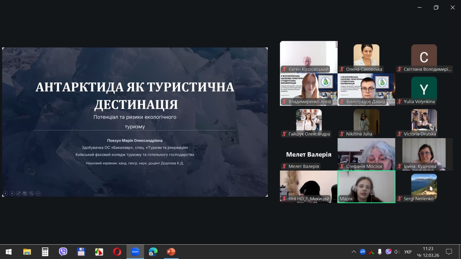«Антарктида як туристична дестинація: потенціал та ризики» – ще одна цікава тема для обговорення. Марія ПОВЗУН, здобувачка Київського фахового коледжу туризму та готельного господарства, акцентувала увагу на нестандартному і надихаючому погляді на туризм майбутнього. Дослідження формує теоретичну базу для розуміння екстремального туризму та ризик-менеджменту, що є актуальним для диверсифікації туристичних послуг.