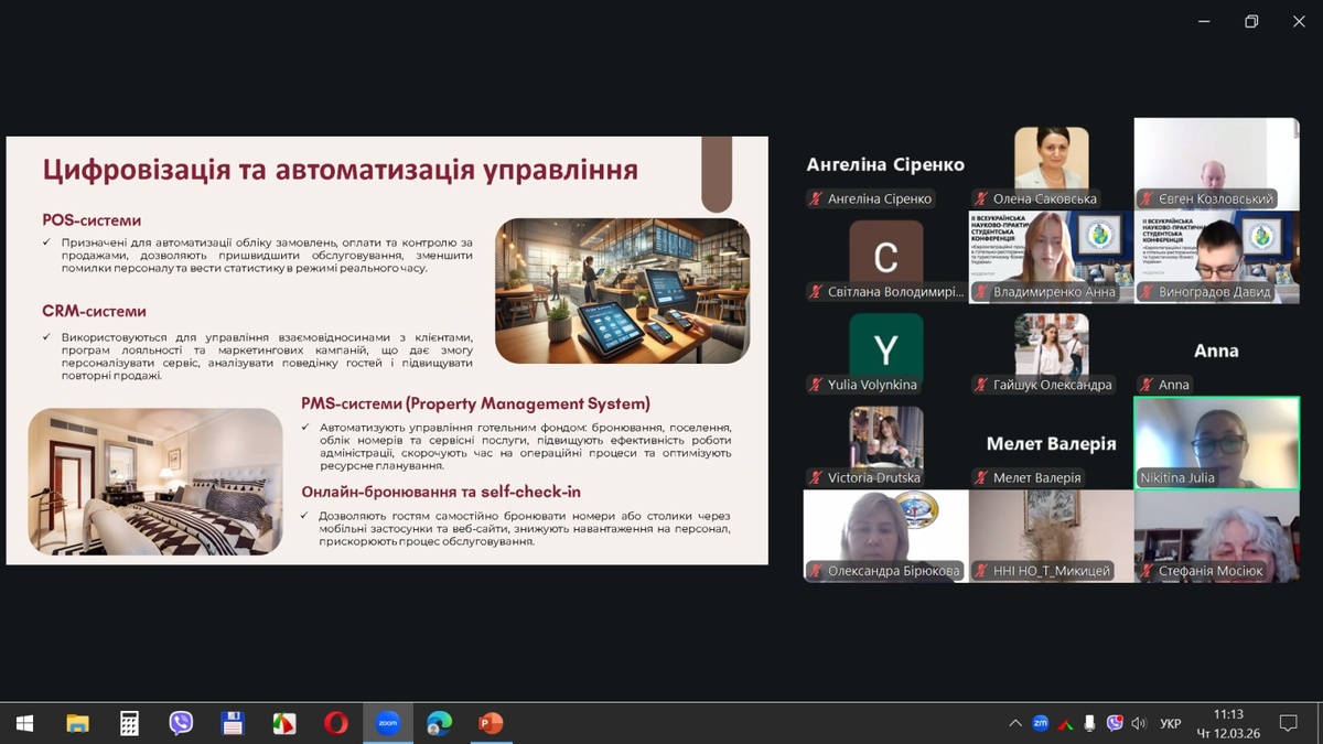 Участь у пленарному засіданні конференції взяли здобувачі вищої освіти, які навчаються за спеціальностями «Туризм та рекреація» і «Готельно-ресторанна справа та кейтеринг» в Уманському національному університеті.