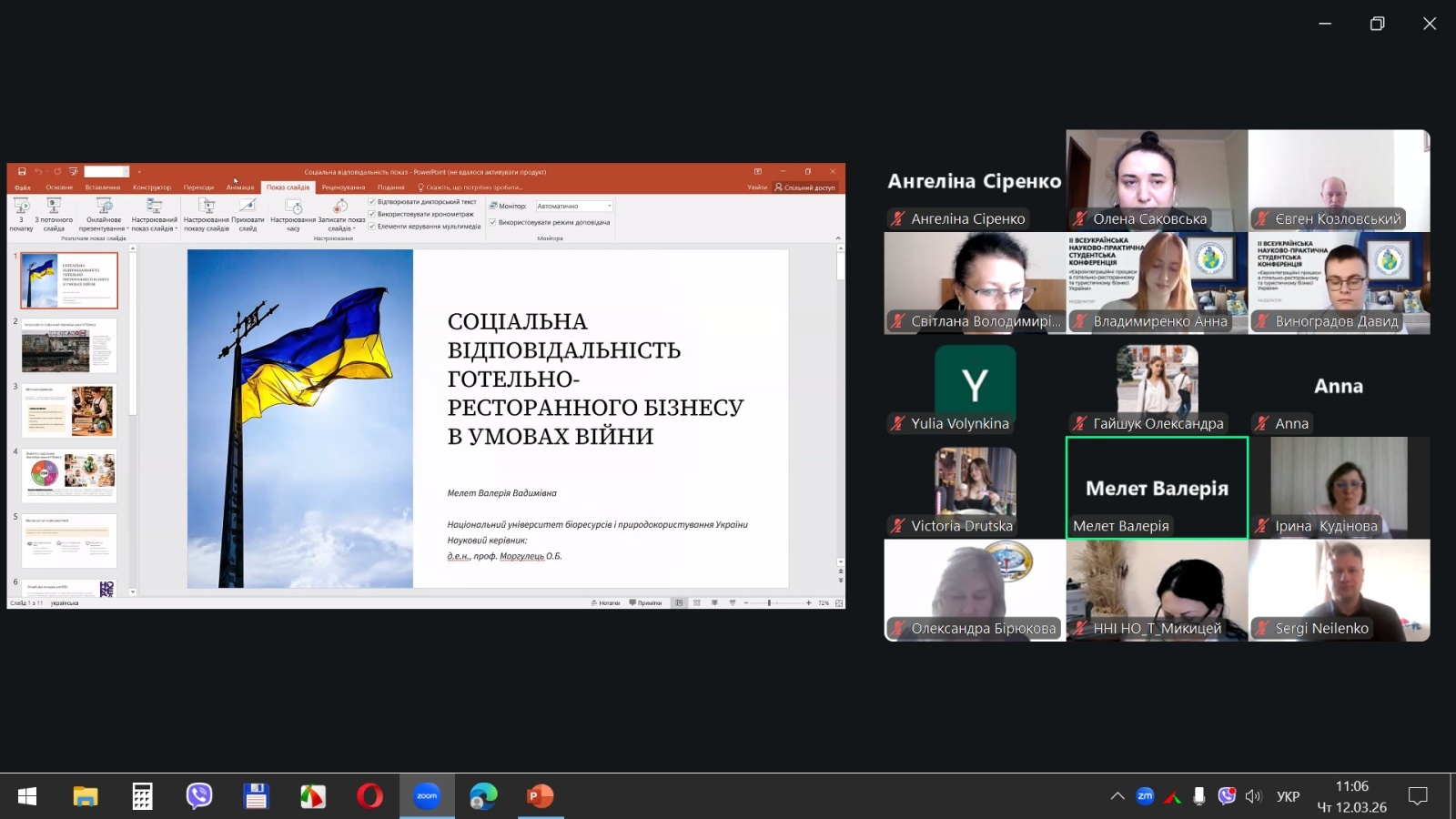 Валерія МЕЛЕТ, студентка НУБіП України, у своїй доповіді «Соціальна відповідальність готельно-ресторанного бізнесу в умовах війни» підняла важливе питання: як бізнес у сфері гостинності може та повинен відповідати на суспільні виклики воєнного часу. По суті це теоретичне підґрунтя для формування нових стандартів корпоративної відповідальності в галузі.