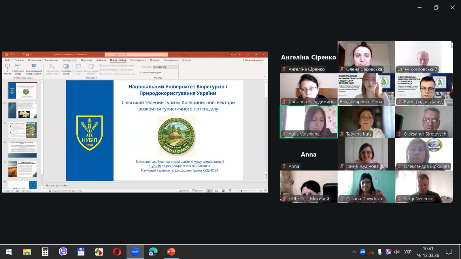 Юлія ВОЛИКІНА, студентка НУБіП України, презентувала результати дослідження на тему «Розвиток туристичного потенціалу сільського зеленого туризму Київської області». Це регіональний зріз агротуристичного потенціалу столичного регіону. Розроблені пропозиції для місцевих органів влади та підприємців щодо розвитку туристичної інфраструктури Київщини мають практичне значення.