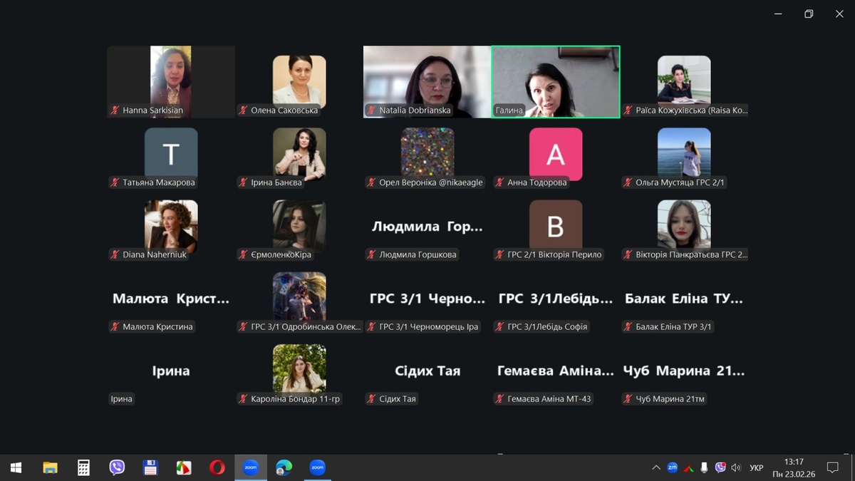23 лютого 2026 року здобувачі вищої освіти спеціальностей «Туризм та рекреація», «Готельно-ресторанна справа та кейтеринг» і науково-педагогічні працівники кафедри туризму та готельно-ресторанної справи Уманського національного університету відвідали відкриту лекцію Галини Тодорової – організаторки туристичних подорожей, генеральної директорки туристичної компанії «Travel Tour Odessa», авторки блогу «Подорожі, навчання, саморозвиток», на тему: «Досвід організації туристичних подорожей. Практичні перспективи в професії».