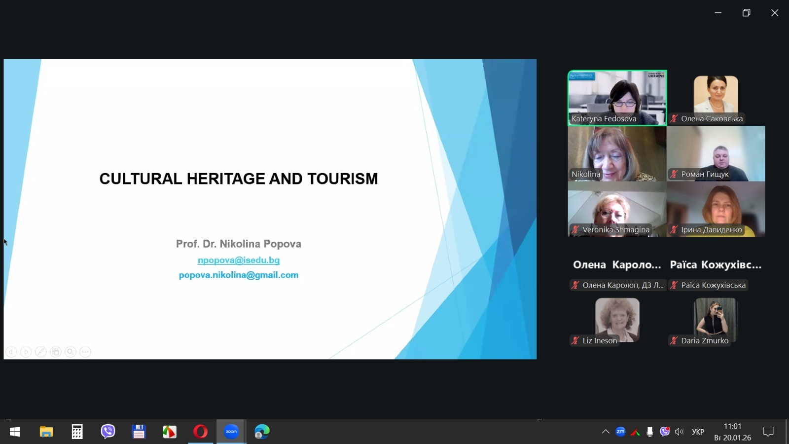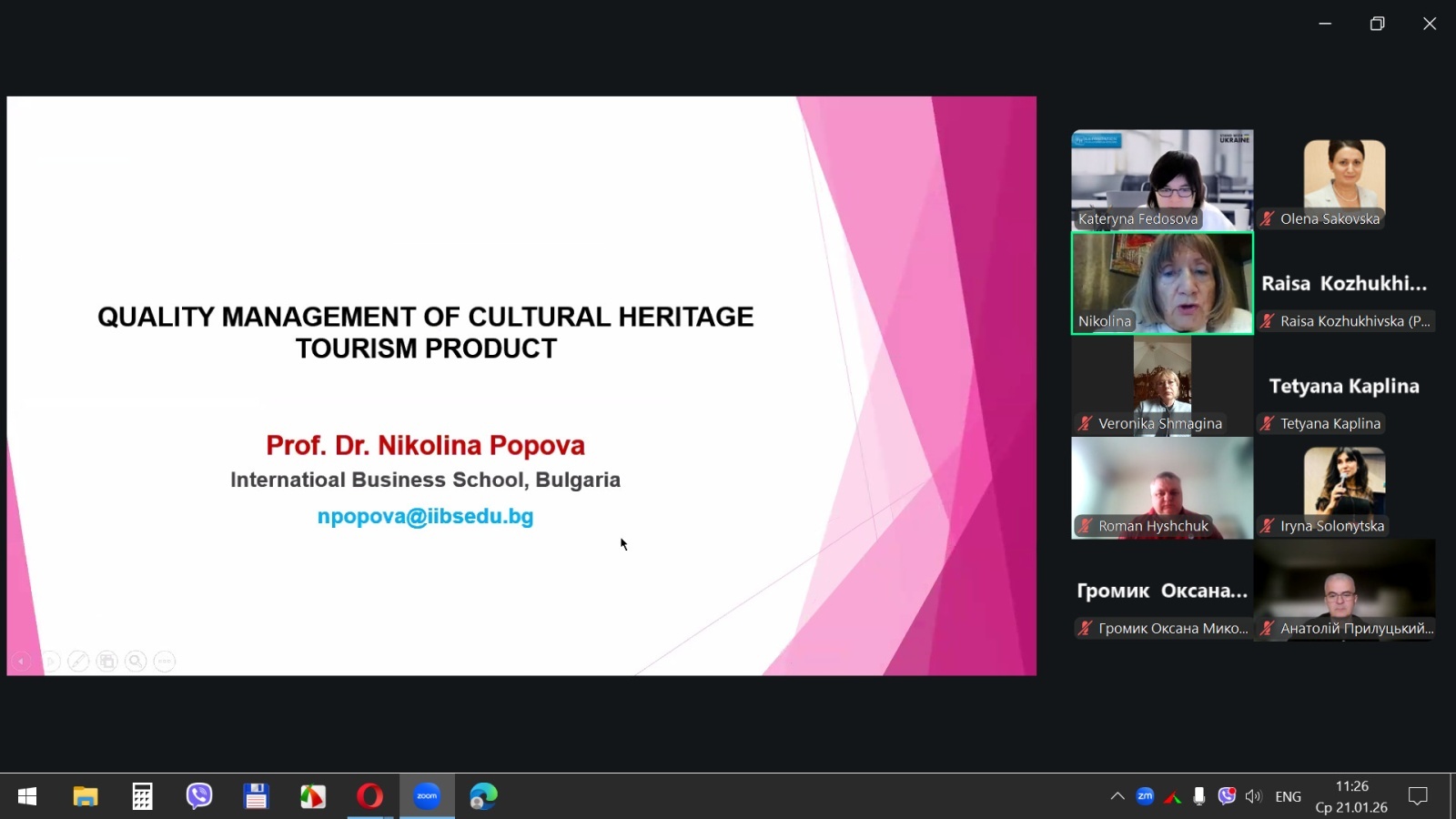 Спікером вебінару була Prof. Nikolina R. Popova – Professor Emeritus, International Business School (Болгарія), експертка з культурного та сталого туризму, розробки освітніх програм і співпраці освіти, бізнесу та держави.