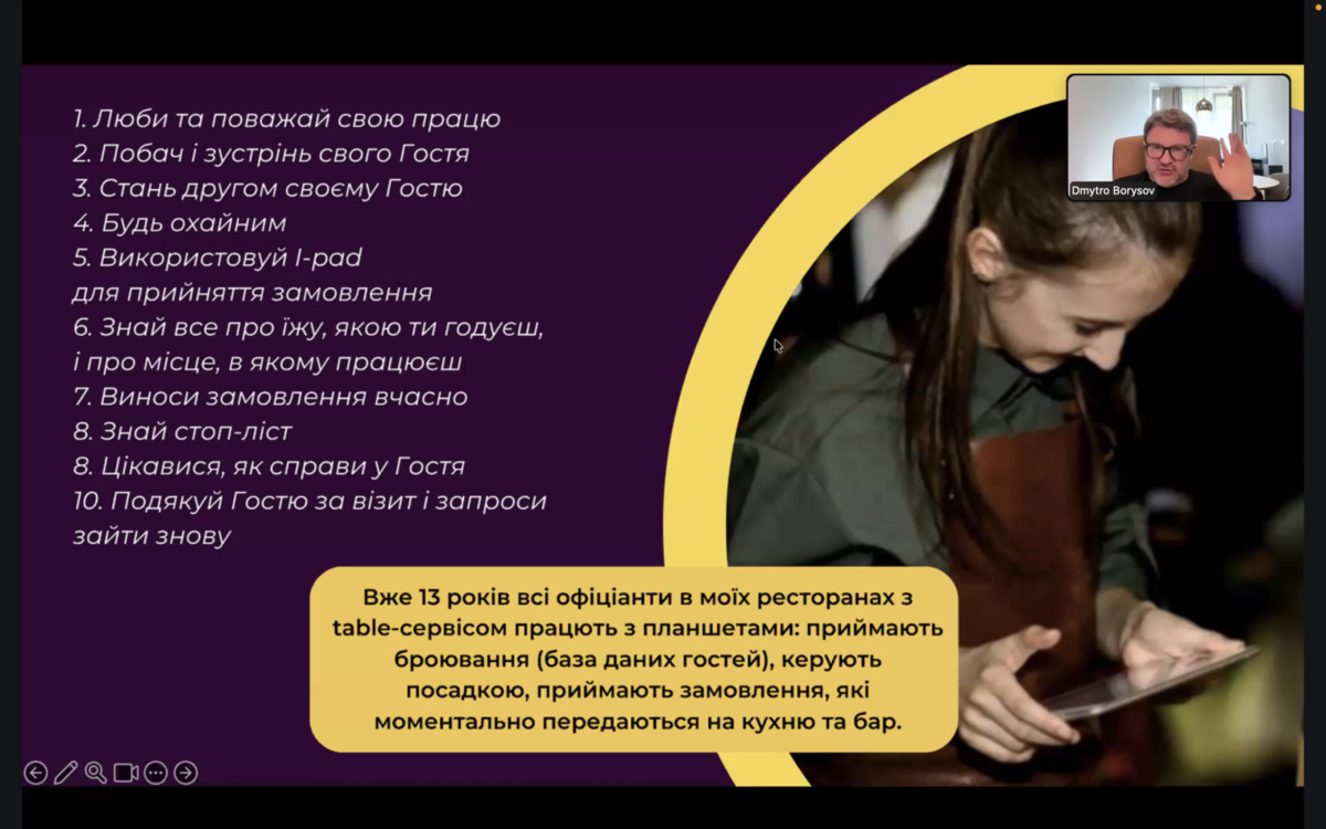 Спікер також акцентував на важливості створення унікального продукту, підходах до збільшення середнього чека та формуванні лояльності гостей, що спонукає їх повертатися знову і знову.
