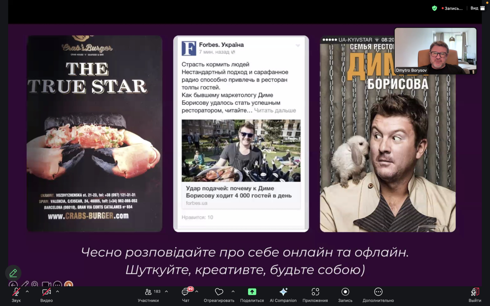 Спікером заходу став Дмитро Борисов — відомий український ресторатор, бізнес-коуч і засновник понад 80 успішних закладів, серед яких «Канапа», «БПШ», «Білий Налив», «Барсук» та інші.