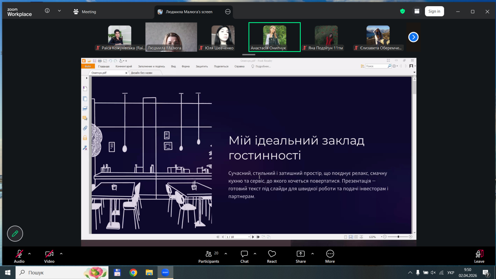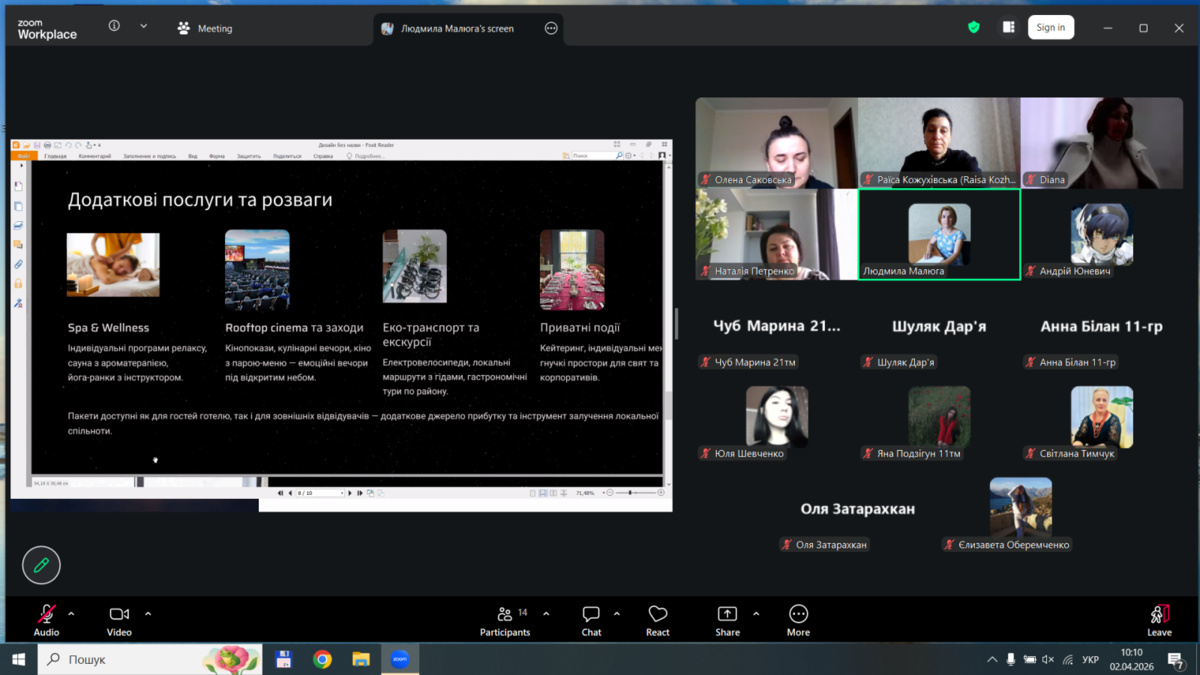 У межах святкування «Тижня HoReCa 2026» на кафедрі туризму та готельно-ресторанної справи Уманського національного університету відбулася знакова подія – конкурс презентацій «Мій ідеальний заклад сфери гостинності».