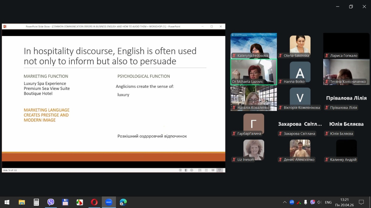 Міжкультурна комунікація у сфері гостинності: участь у міжнародному вебінарі «Поширені помилки у спілкуванні діловою англійською мовою для фахівців індустрії гостинності»