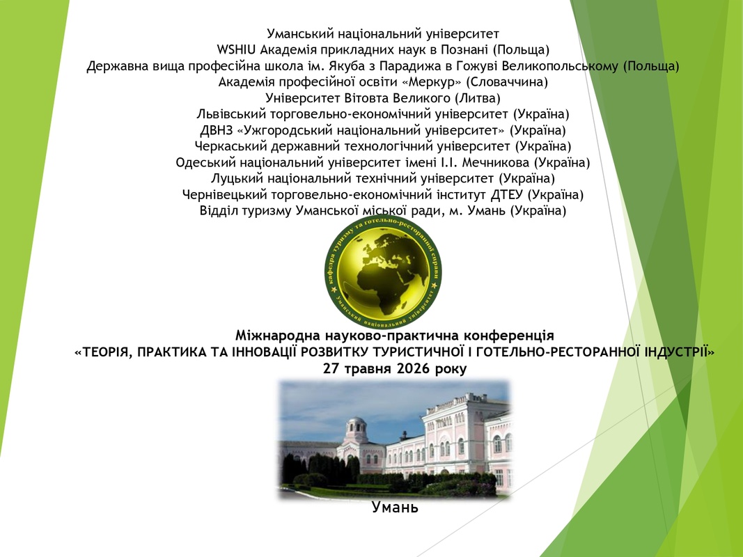 Міжнародна науково-практична конференція «ТЕОРІЯ, ПРАКТИКА ТА ІННОВАЦІЇ РОЗВИТКУ ТУРИСТИЧНОЇ І ГОТЕЛЬНО-РЕСТОРАННОЇ ІНДУСТРІЇ» 27 травня 2026 року