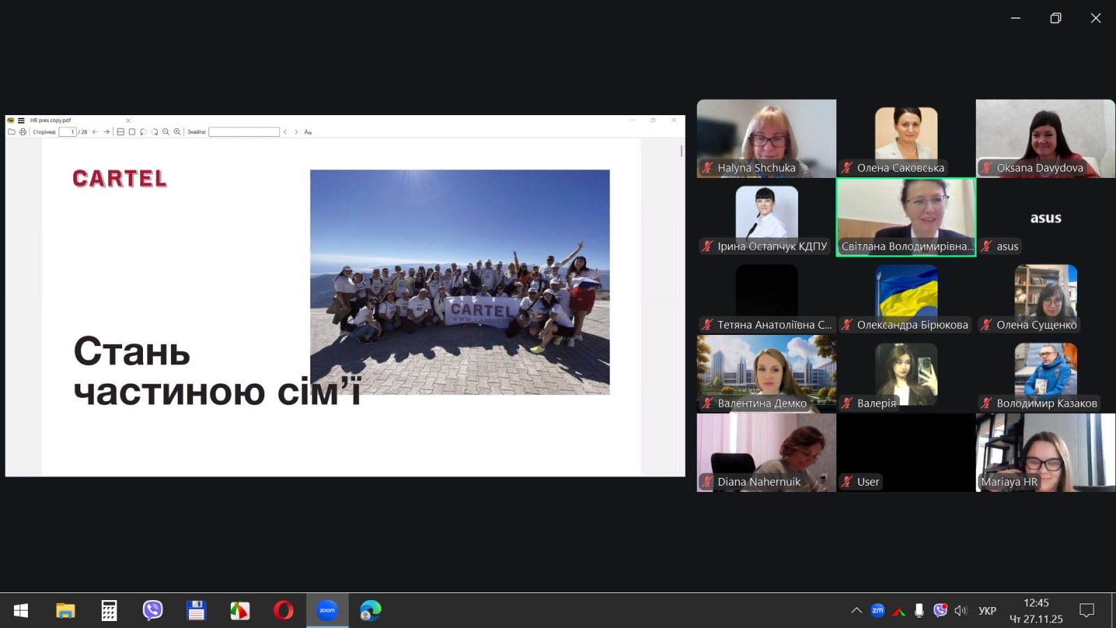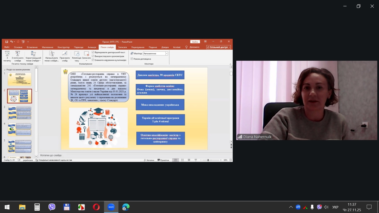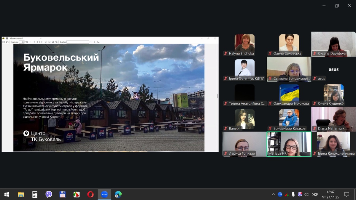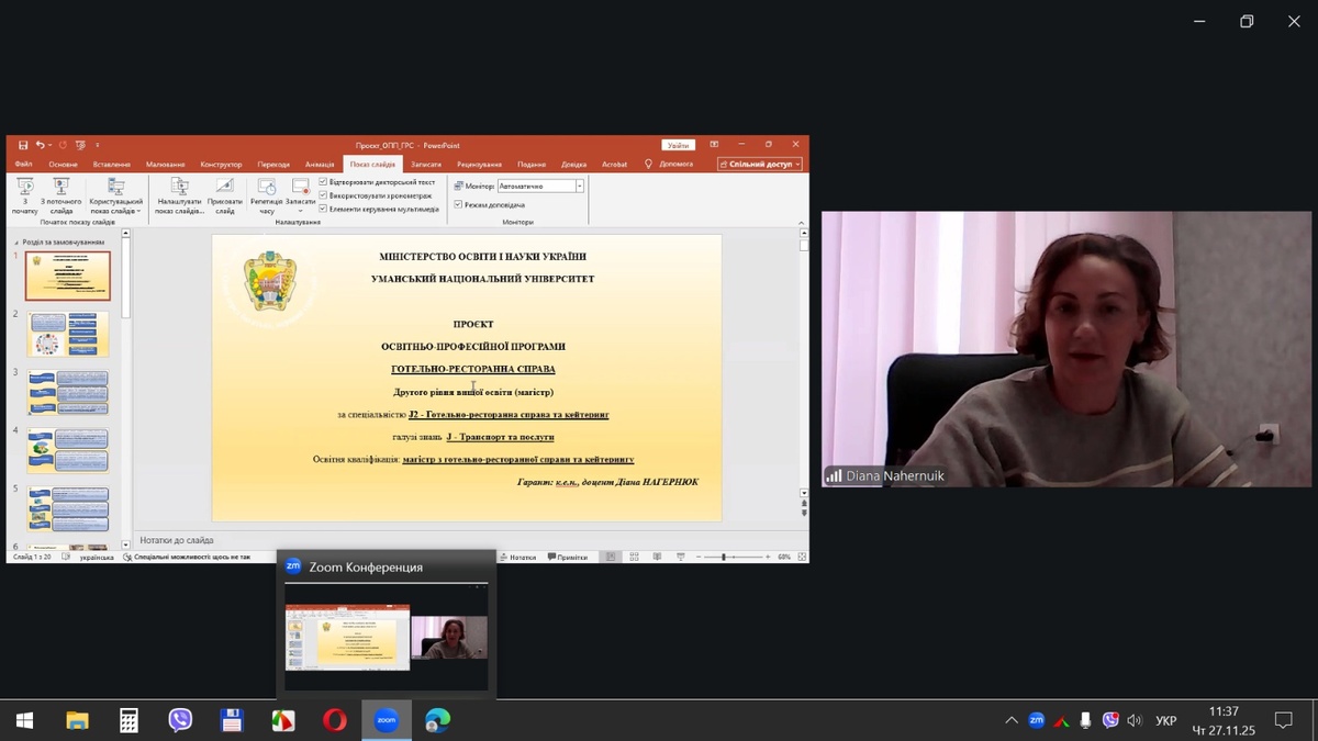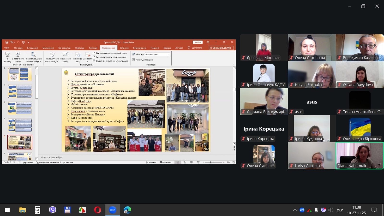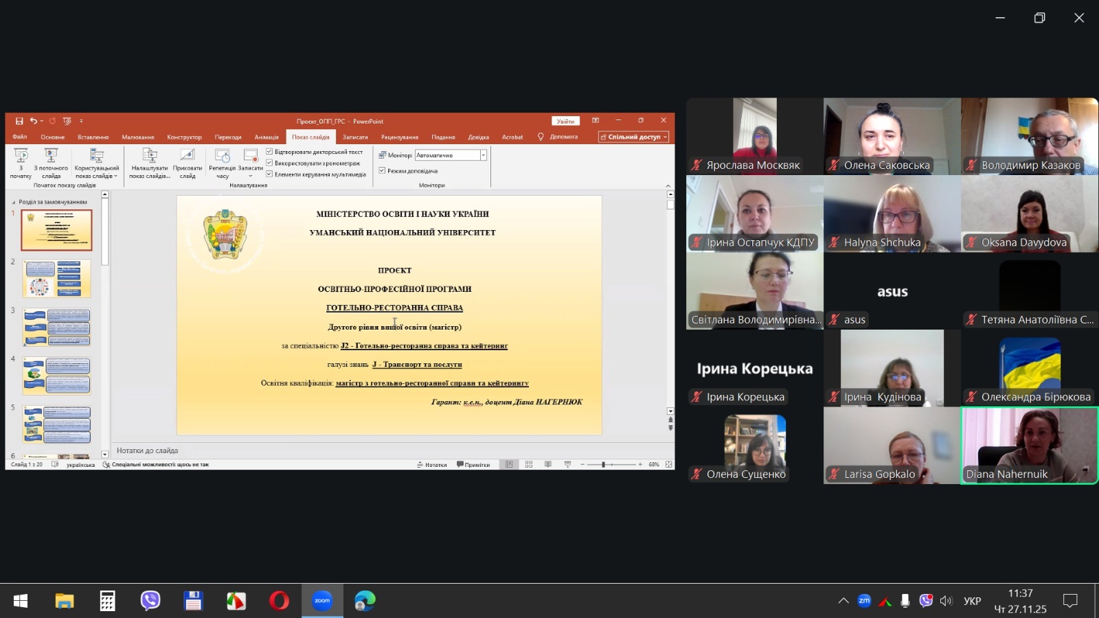 Викладачі кафедри туризму та готельно-ресторанної справи Уманського національного університету взяли активну участь у Міжнародному освітньому нетворкінгу «Практико-орієнтована підготовка фахівців галузі знань J “Транспорт та послуги”: реалії та виклики», який відбувся 27 листопада 2025 року в онлайн-форматі. Захід був організований кафедрою готельно-ресторанної справи та туризму економічного факультету Національного університету біоресурсів і природокористування України.