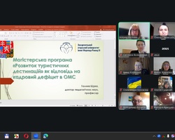 Модераторкою заходу виступила завідувачка кафедри готельно-ресторанної справи та туризму Світлана Мельниченко, яка відмітила актуальність професійної дискусії щодо підготовки фахівців першого та другого рівнів вищої освіти за спеціальностями J2 «Готельно-ресторанна справа та кейтеринг» та J3 «Туризм та рекреація».