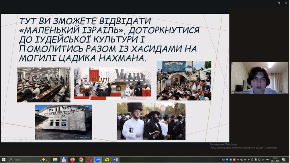 Цікавим для здобувачів був онлайн-квіз «Цей дивовижний Туристичний світ» вікторина з питань туризму, географії, завдання «Знайди точку на карті» по фото та загадках із використанням Google Maps. Конкурс промороликів «Моя найкраща подорож».