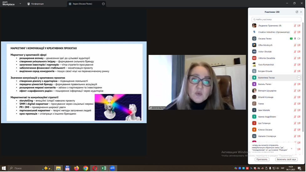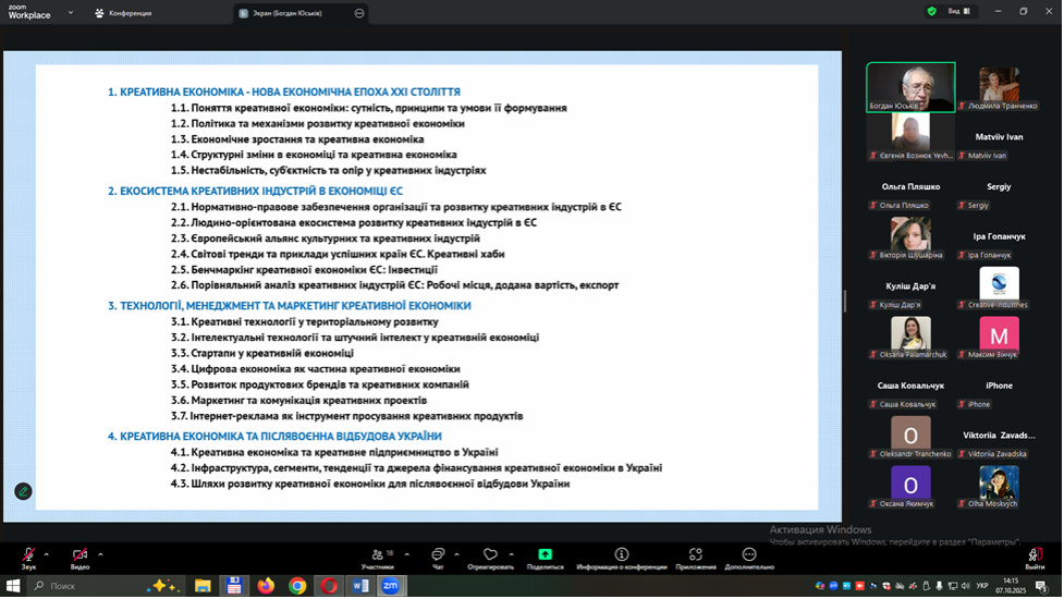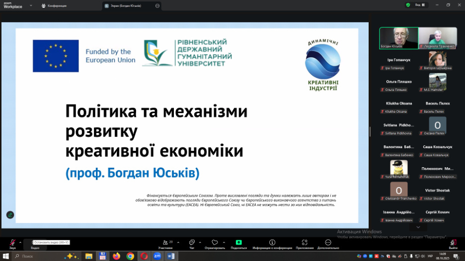 У заході взяло близько 70 зацікавлених науково-педагогічних працівників, педагогічних працівників, економістів, фахівців креативної індустрії зі всієї України. Навчання за даною програмою дало зрозуміти, що креативні індустрії це сектори економіки, засновані на створенні та комерціалізації інтелектуальної власності, знань і творчих талантів. Вони охоплюють такі сфери, як аудіовізуальні та перформативні мистецтва, дизайн, туризм, архітектура, мода, видавнича діяльність, ігри, нові медіа та фестивалі, де ключовим є інноваційне та творче вираження для створення доданої вартості та робочих місць.