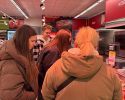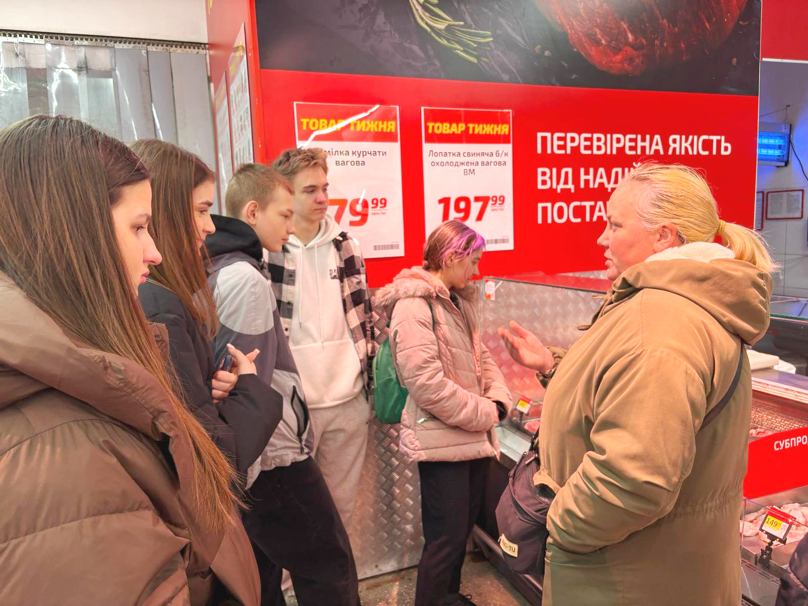 Здобувачі першого курсу спеціальності J2 «Готельно-ресторанна справа та кейтеринг»провели практичне заняття з дисципліни «Товарознавство» на тему «Товарознавча характеристика м’яса та м’ясних товарів» у реальних умовах сучасного ритейлу. Базою для навчання став супермаркет Велмарт, зокрема відділ реалізації свіжого м’яса та м’ясних напівфабрикатів.
