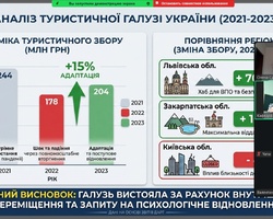 - розвиток внутрішнього туризму як інструменту психологічної реабілітації та підтримки економіки, де акцент робився на створенні короткострокових маршрутів у відносно безпечних регіонах України;