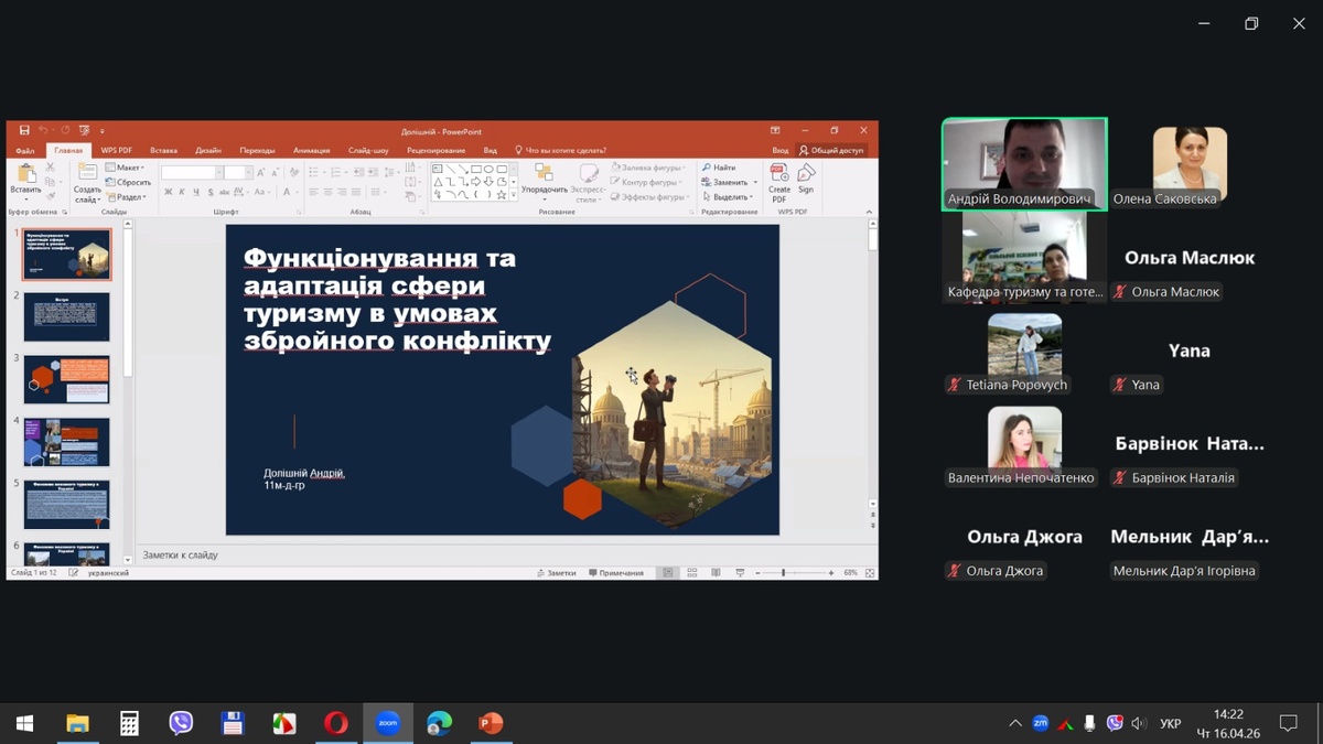 Стратегії стійкості та горизонти відновлення: на кафедрі туризму та готельно-ресторанної справи УНУ відбувся семінар про розвиток галузі в умовах війни