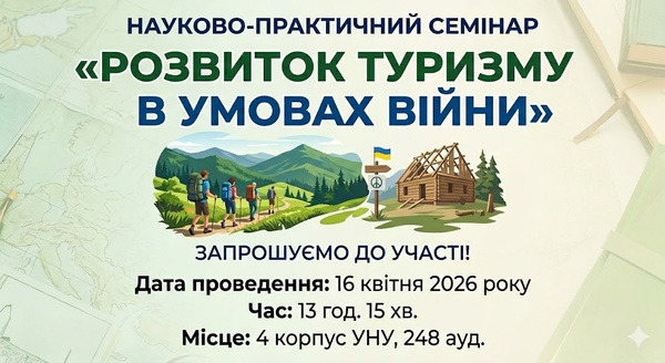 Метою науково-практичного семінару стало комплексне дослідження трансформаційних процесів у туристичній сфері в умовах воєнного стану, а також об’єднання зусиль наукової спільноти та практиків бізнесу для розробки дієвих стратегій адаптації, підтримки конкурентоспроможності галузі та формування концептуальних засад її розвитку.