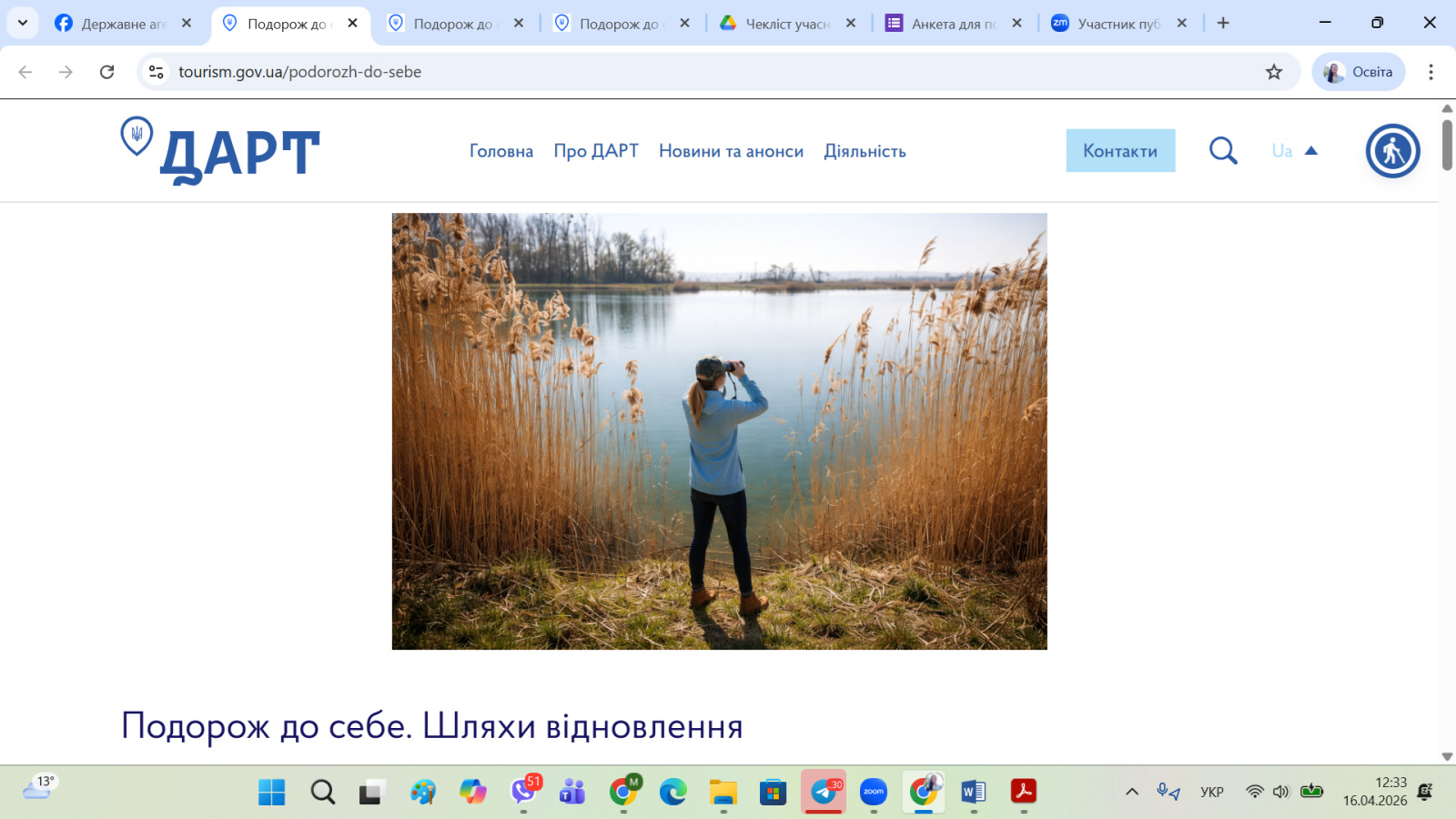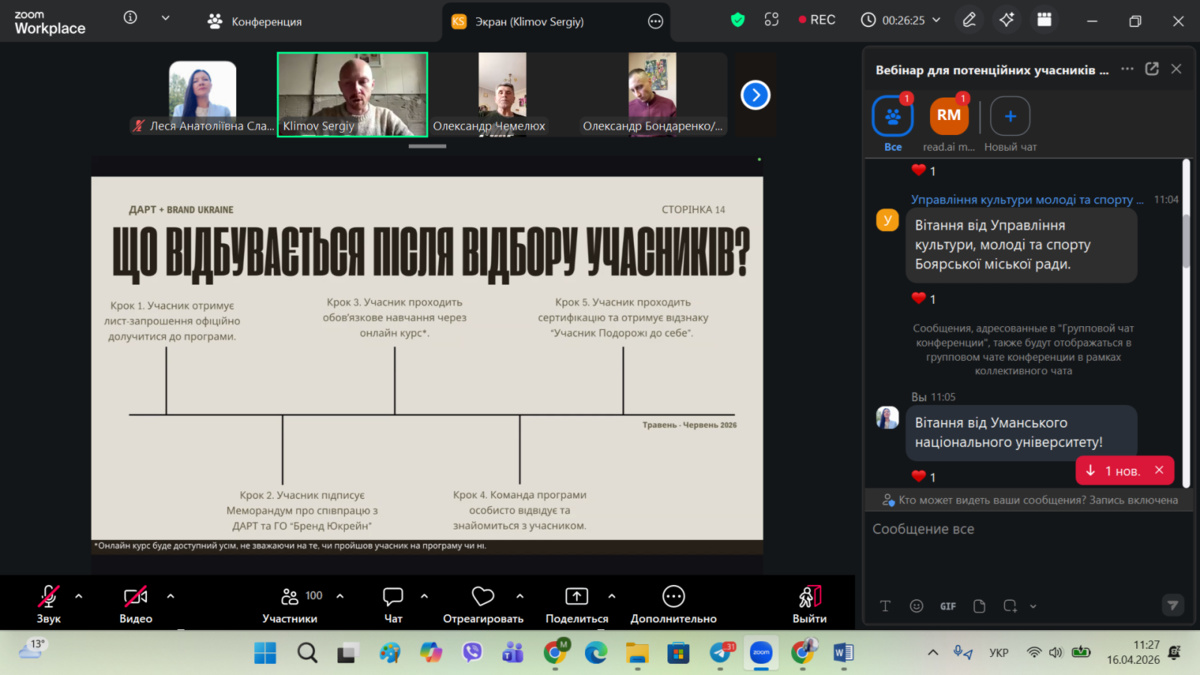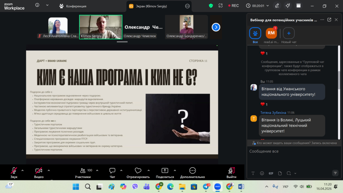 Зокрема, 16 квітня 2026 року відбувся відкритий вебінар, присвячений національній програмі «Подорож до себе», до якого долучилися гаранти освітньо-професійних програм ОПП Туризм, ОПП Готельно-ресторанна справа, НПП групи забезпечення та здобувачі вищої освіти бакалаврського і магістерського рівнів.