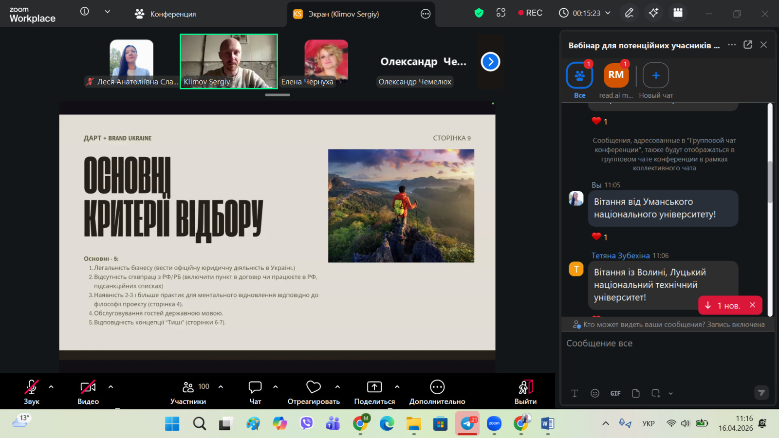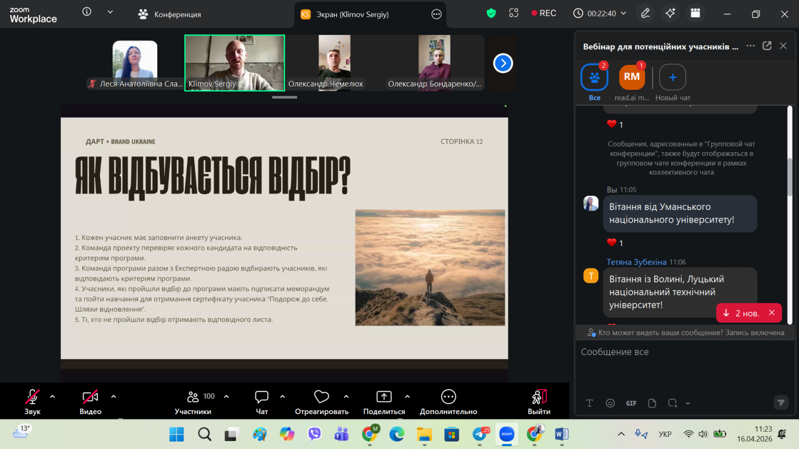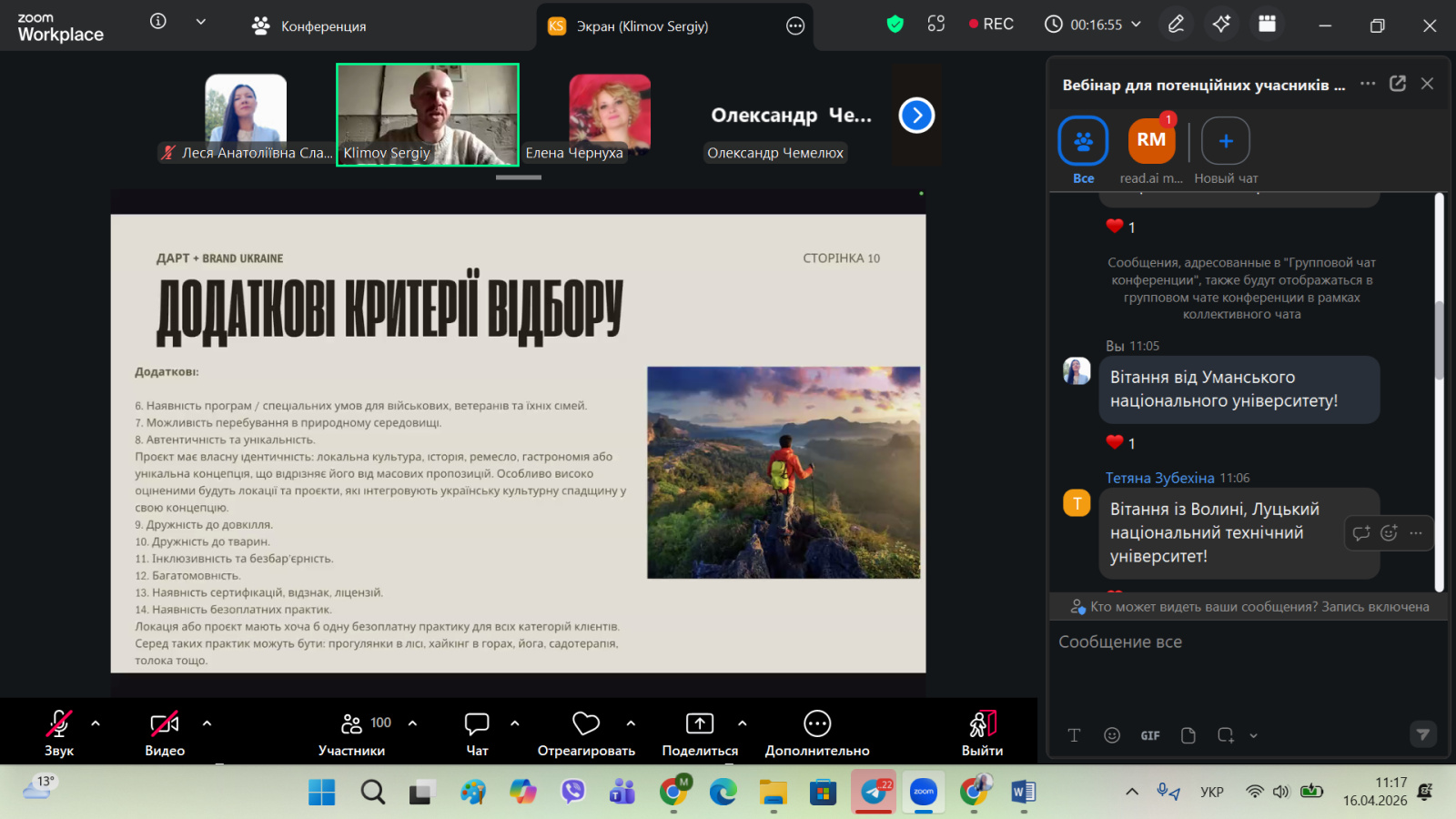 Зокрема, 16 квітня 2026 року відбувся відкритий вебінар, присвячений національній програмі «Подорож до себе», до якого долучилися гаранти освітньо-професійних програм ОПП Туризм, ОПП Готельно-ресторанна справа, НПП групи забезпечення та здобувачі вищої освіти бакалаврського і магістерського рівнів.