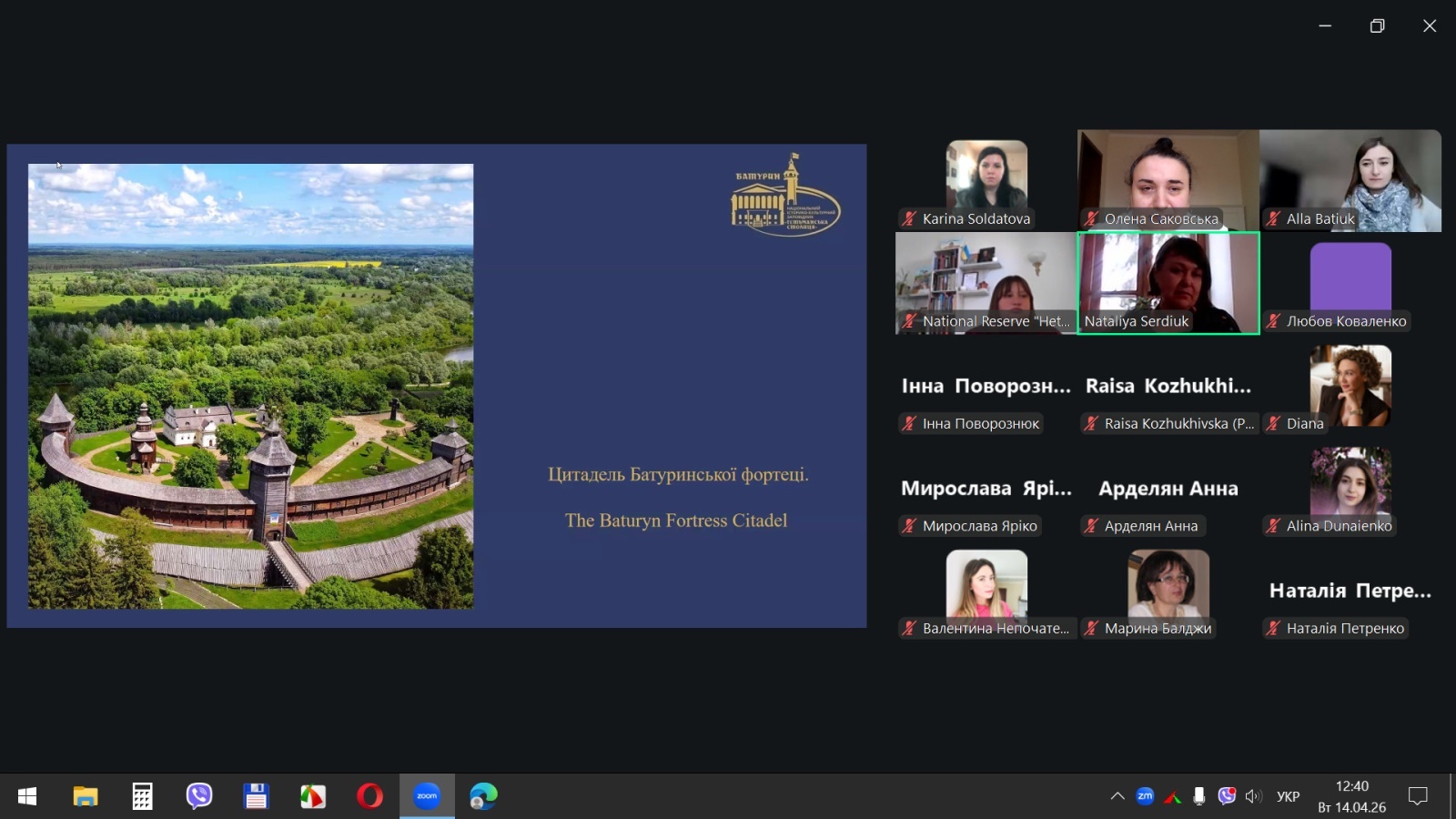 Батурин – широко відомий осередок культури, туризму та просвітництва. Перлиною і життєдайним духовним джерелом України без перебільшення є Національний історико-культурний заповідник «Гетьманська столиця». Не кожен встиг там побувати, проте у наші часи подорож часто починається з онлайну. Під час вебінару викладачі та студенти отримали надзвичайну можливість познайомитися як з концепцією створення Батуринського комплексу, так і з особливостями екскурсійної діяльності у часи російсько-української війни.