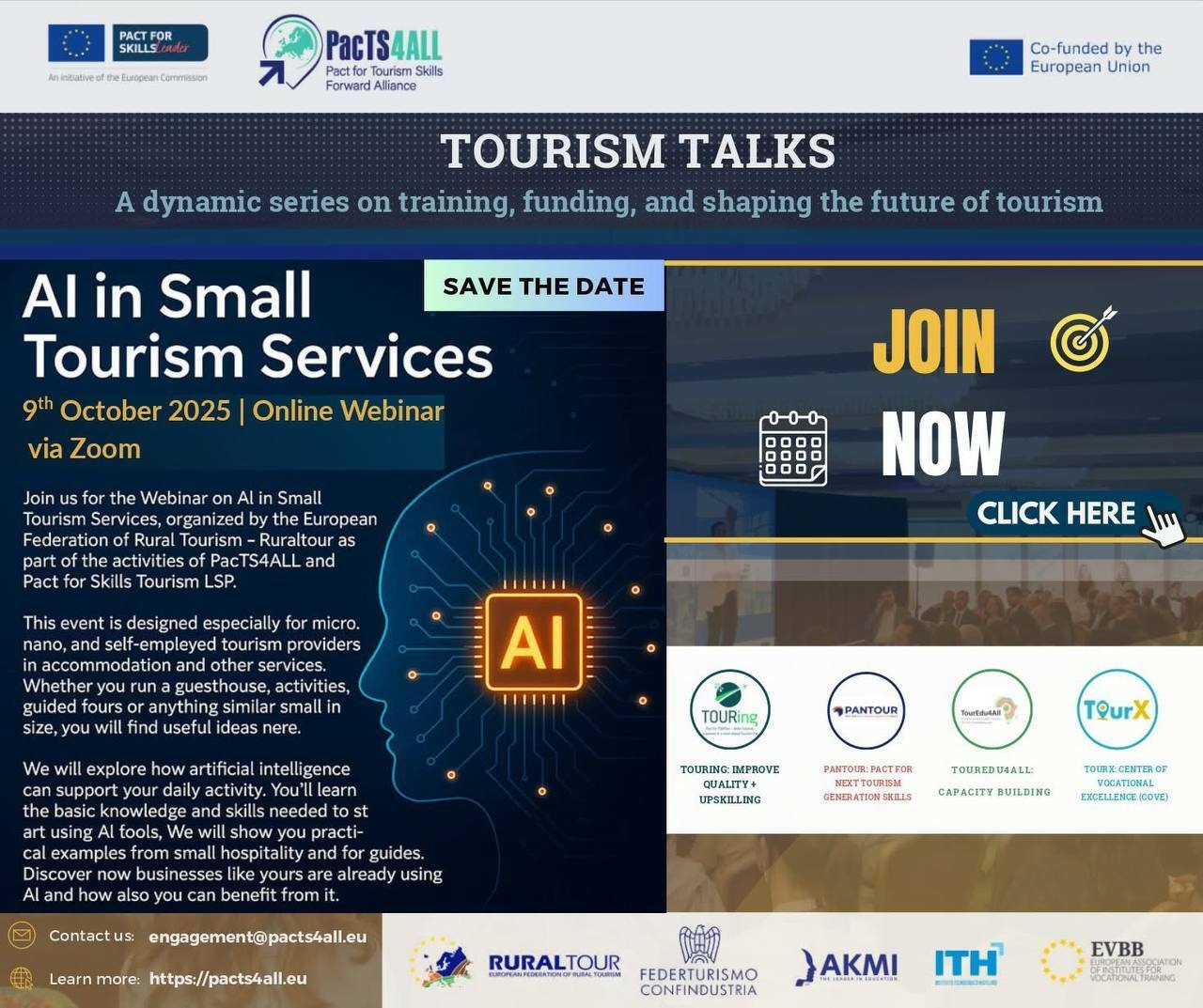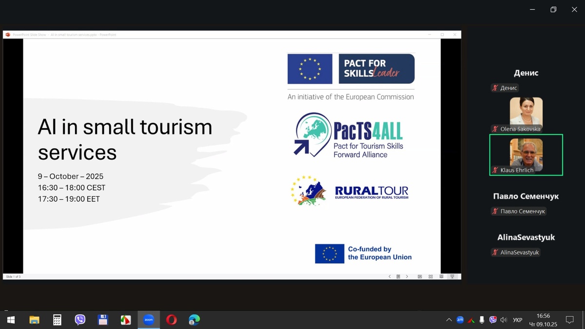 Вебінар організовано Європейською федерацією сільського туризму – RuralТour у межах ініціатив PacTS4ALL та Pact for Skills Tourism LSP. Цей вебінар розроблено для мікро-, нано- та самозайнятих провайдерів туристичних послуг у сфері розміщення та суміжних сервісів. Захід проводився англійською мовою.