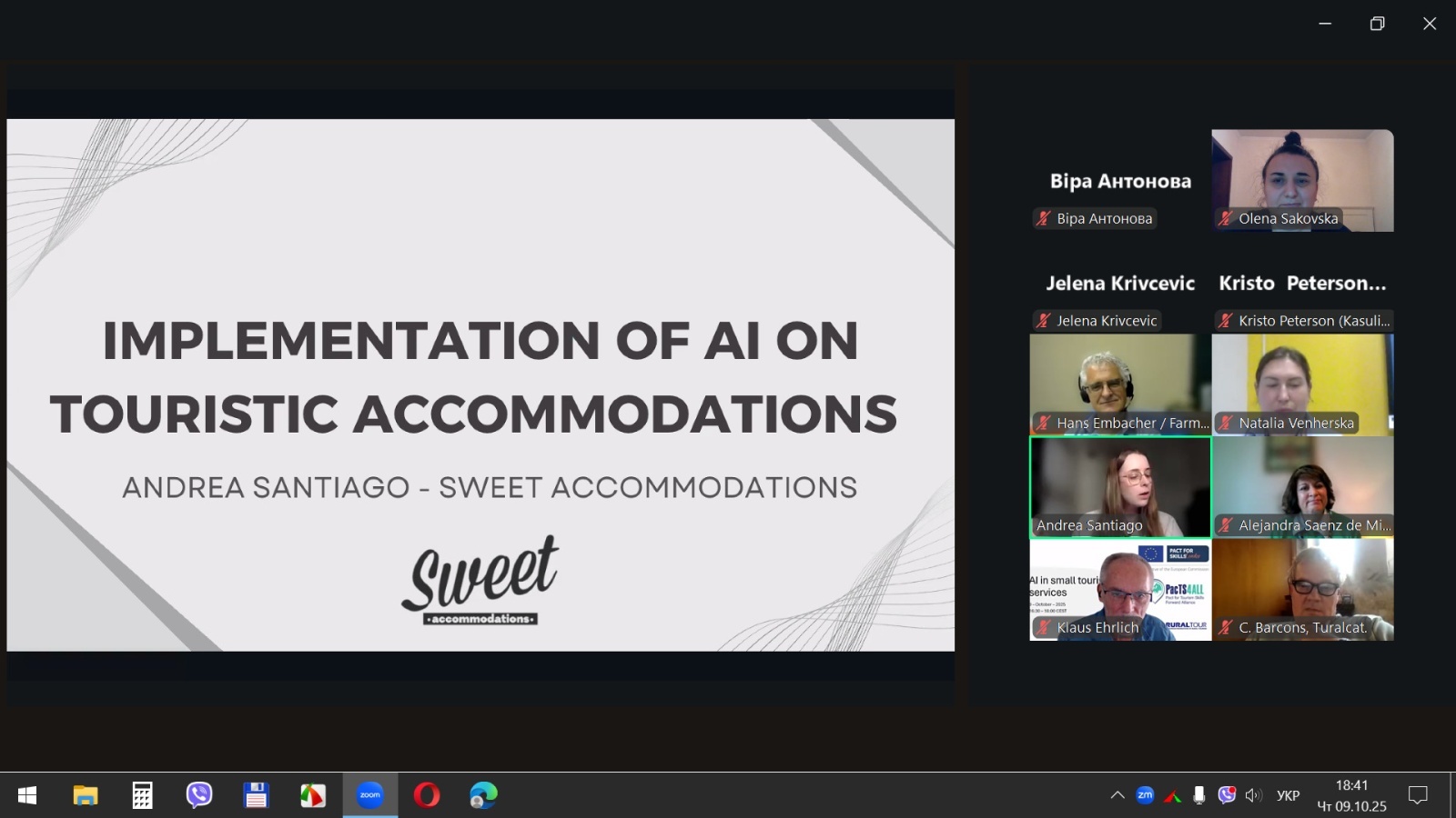 9 жовтня 2025 р. відбувся вебінар «Штучний інтелект у туристичних послугах», участь в якому взяли науково-педагогічні працівники кафедри туризму та готельно-ресторанної справи Уманського національного університету і здобувачі вищої освіти, які навчаються за спеціальностями «Туризм та рекреація» і «Готельно-ресторанна справа та кейтеринг».