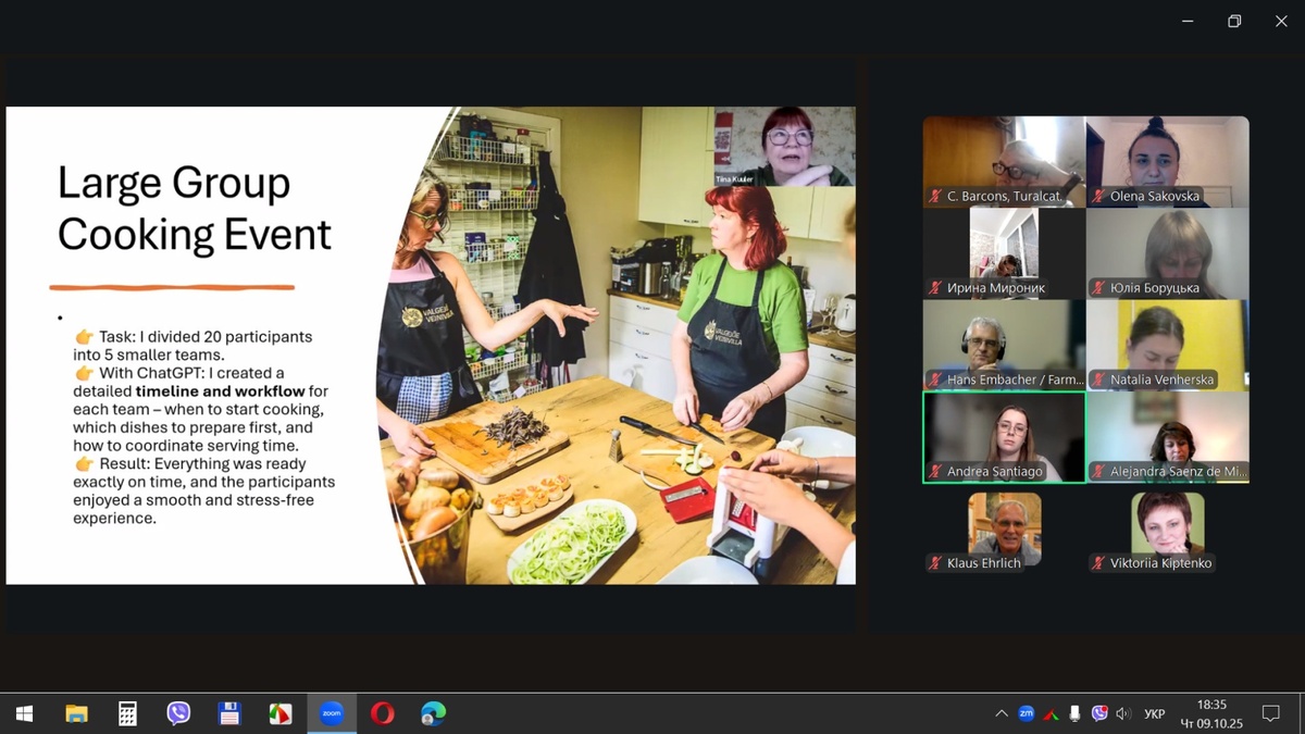 У виступі розповіла, як використовує ШІ для створення маркетингових текстів, розробки рецептів, розрахунку цін, аналізу даних і натхнення нових ідей.