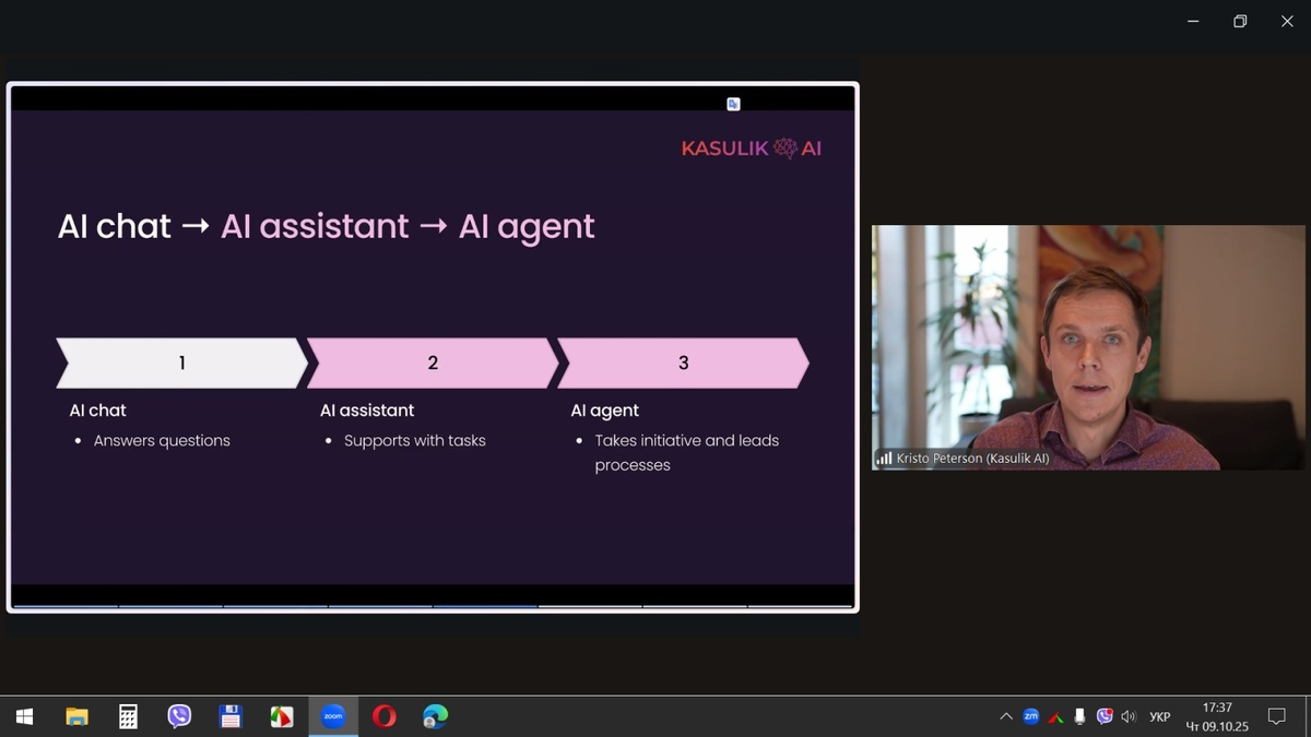 Що таке ШІ та які можливості він відкриває для малих постачальників послуг розповів Крісто Петерсон – стратег і тренер зі штучного інтелекту. Він допомагає бізнесам і державним організаціям використовувати потенціал ШІ для підвищення ефективності та інновацій. Через Kasulik AI (kasulik.ai) він надає практичні тренінги та індивідуальні стратегії впровадження з реальними навичками роботи з ШІ. Маючи понад 1600 професіоналів, які пройшли навчання, і понад 3000 годин практичної роботи у 2024 р., Крісто зосереджується на результативному впровадженні ШІ в різних галузях. Його досвід охоплює глобальні бренди, такі як Hyundai, Coca-Cola і державні установи.