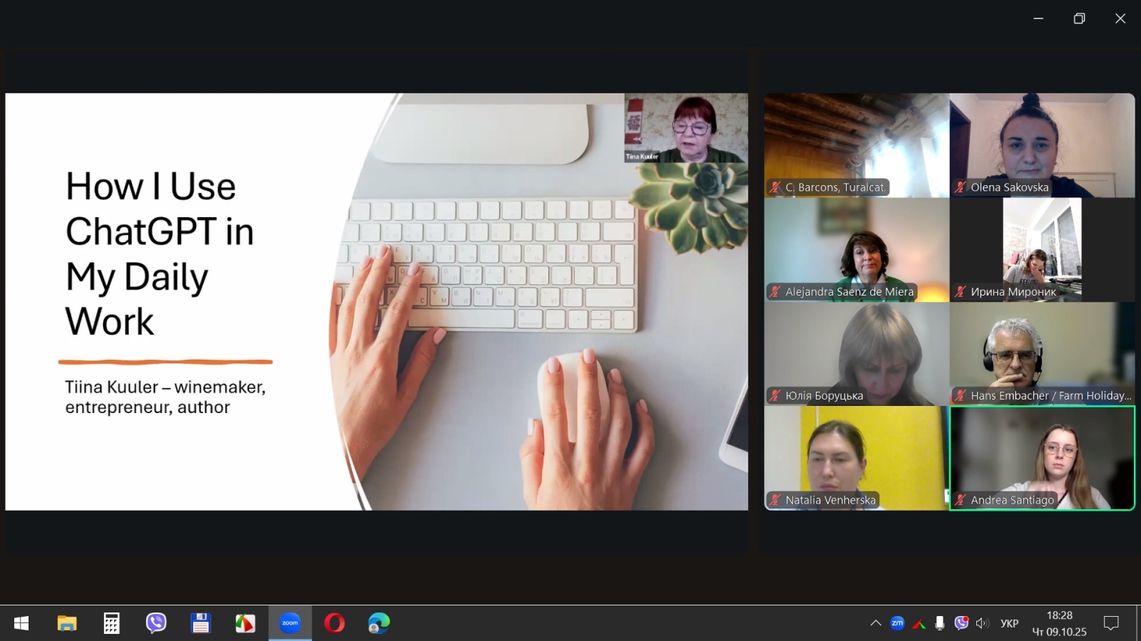 Дякуємо організаторам за цікавий і корисний досвід, який слухачі отримали під час проведення вебінару. Учасники змогли побачити, як ШІ може зробити малий бізнес розумнішим і більш конкурентоспроможним. Це нагода посилити цифрові навички здобувачів вищої освіти та відкрити доступні й практичні рішення на основі ШІ для їх подальшої роботи у туристичному бізнесі.